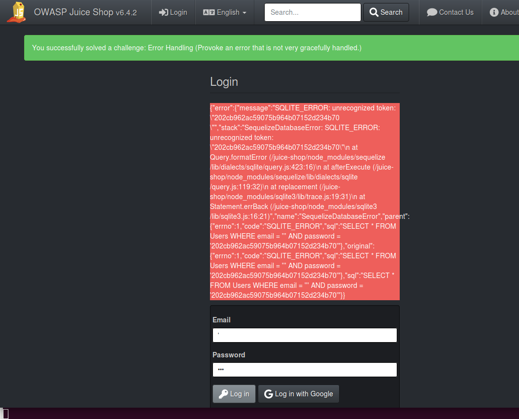 "sql":"SELECT * FROM Users WHERE email = ''' AND password = '202cb962ac59075b964b07152d234b70'"