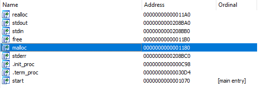 Let’s remember task description, there was something about alloc(), right? Hm… binary is exporting some memory relative functions: